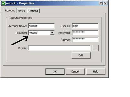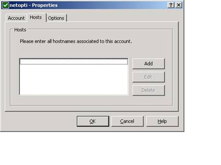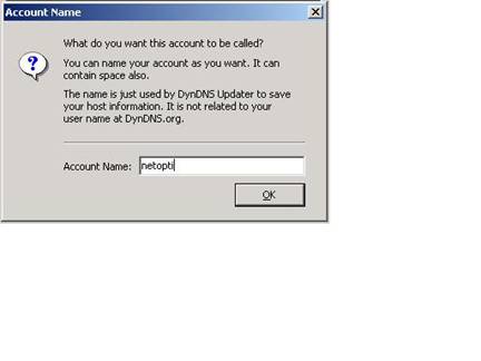 Click on the “Add” button to add a new account. A window will appear asking for a name for the account. Type in “netopti” and click “OK”:
