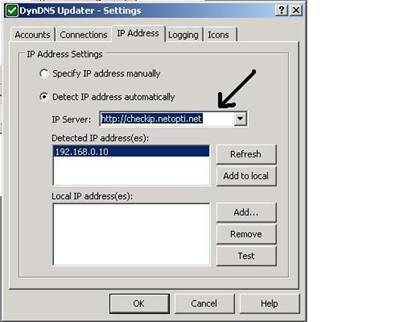 In the Settings window. Click on the “IP Address” tab. Select “Detect IP address automatically” and type in the following server URL: http://checkip.netopti.net/