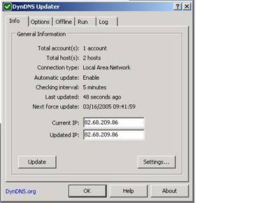 After installation of the client, launch DynDNS updater by double clicking on the icon on the task bar: